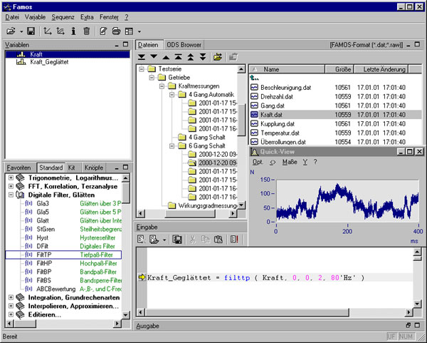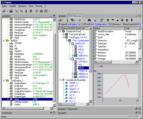 FAMOS přichází s nástrojem pro automatizaci analýzy měření, takže smyčky a dotazy mohou být zasazeny přímo do procesu analýzy dat. Toto umožňuje provádět složité rozbory na jeden stisk tlačítka. Myší lze zahrnout jakékoliv příkaz z editoru formulí do editoru posloupností. Programování makra je tedy tak jednoduché, jak jen může být.